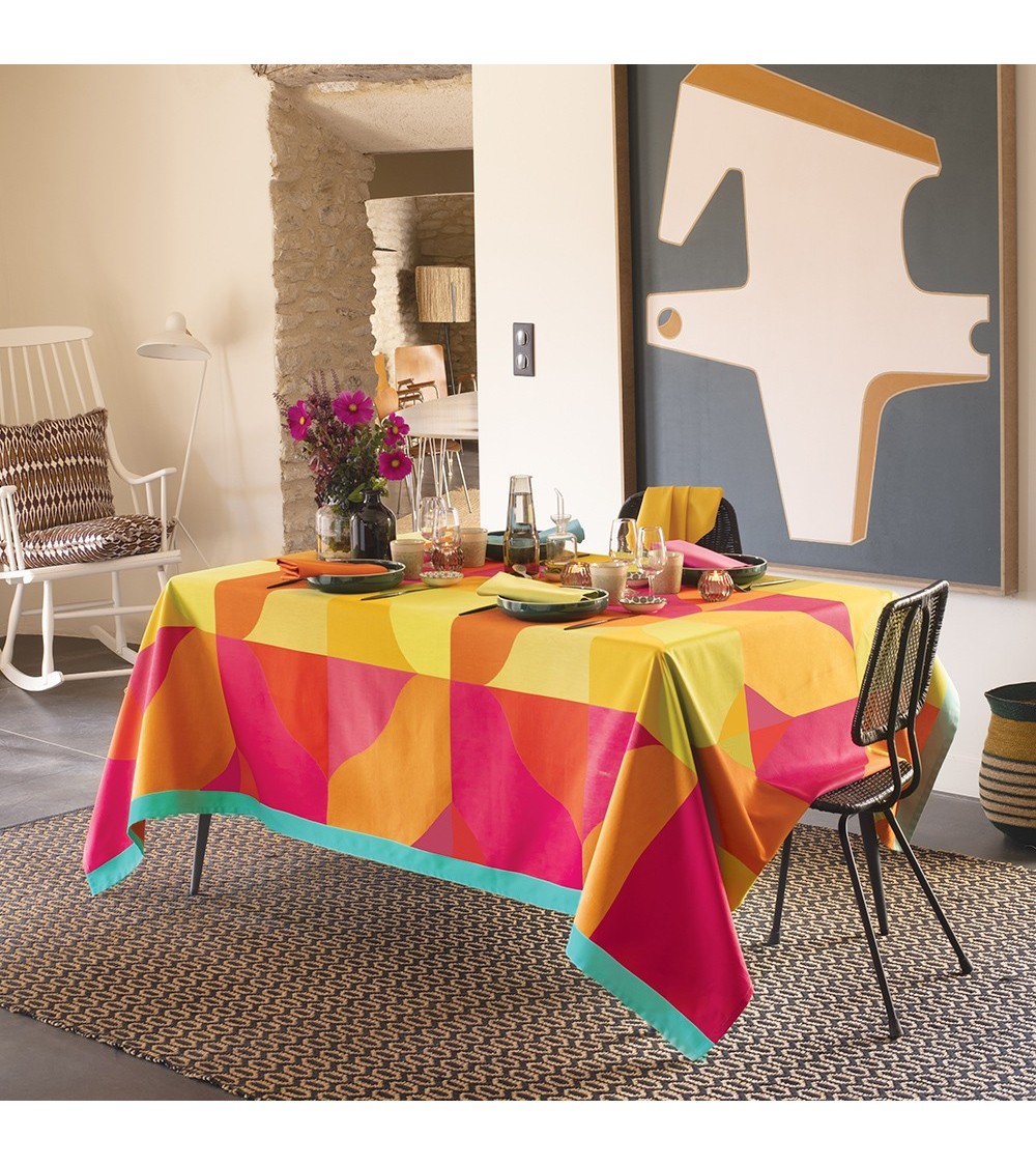Nappe 100% coton damassé (jacquard) fabriquée en France à Gérardmer. Linge des Vosges. Matière : 100% coton. Couleur dominante : summer. Taille (largeur x longueur) : 155x260. Traitement : . Type : jacquard. Style : Contemporain. Finitions : Finition de qualité avec ourlets standards 15 mm. Grammage : . Entretien : Laver séparément à 40°C avant la première utilisation. Une tache s'incruste plus facilement sur un linge non prélavé.Laver en machine avec une lessive couleurs pour le linge de couleur. Respecter les instructions de lavage de l'étiquette cousue sur le produit.Cet article est labellisé Vosges Terre Textile. Il a été tissé dans nos ateliers de Gérardmer : véritable linge fabriqué dans les Vosges !