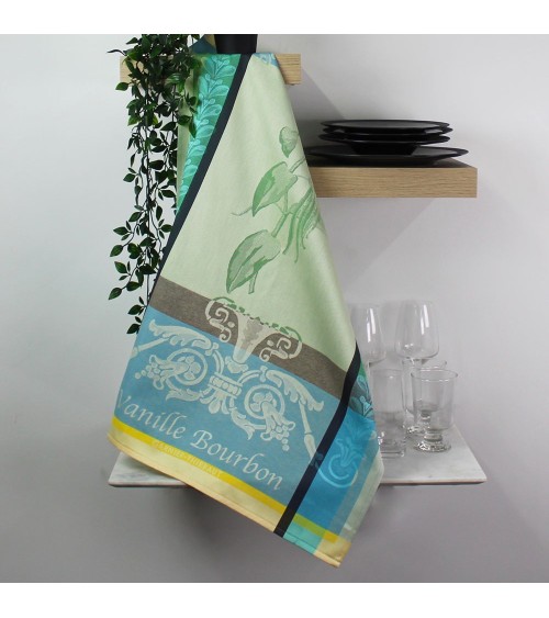 Torchon 100% coton damassé (jacquard) fabriqué en France. Linge des Vosges. Epice délicate, précieuse et enivrante. Un must pour vos créations pâtissières. Matière : 100% coton. Couleur dominante : eden. Taille (largeur x longueur) : 56x77. Traitement : . Type : jacquard. Style : Fleurs et nature. Finitions : Finition de qualité avec ourlet standard de 10 mm. Grammage : . Entretien : Laver séparément à 40°C avant la première utilisation. Une tache s'incruste plus facilement sur un linge non prélavé.Laver en machine avec une lessive couleurs pour le linge de couleur. Respecter les instructions de lavage de l'étiquette cousue sur le produit.Cet article est labellisé Vosges Terre Textile. Il a été tissé dans nos ateliers de Gérardmer : véritable linge fabriqué dans les Vosges !