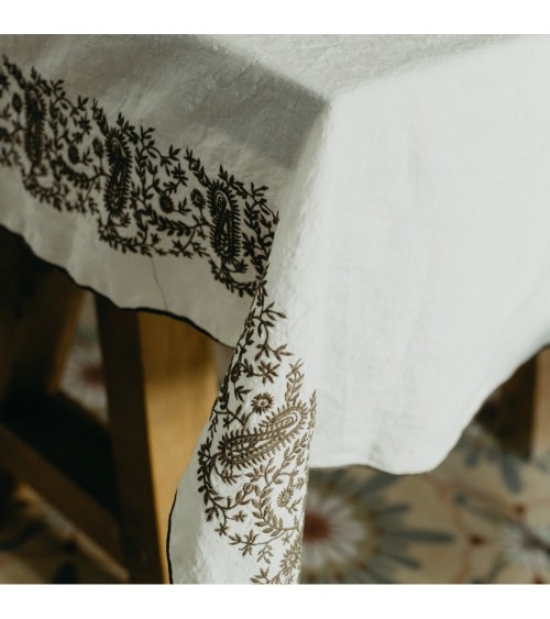 Nappe brodée lin pur lavé sirkeci 170x250 cm