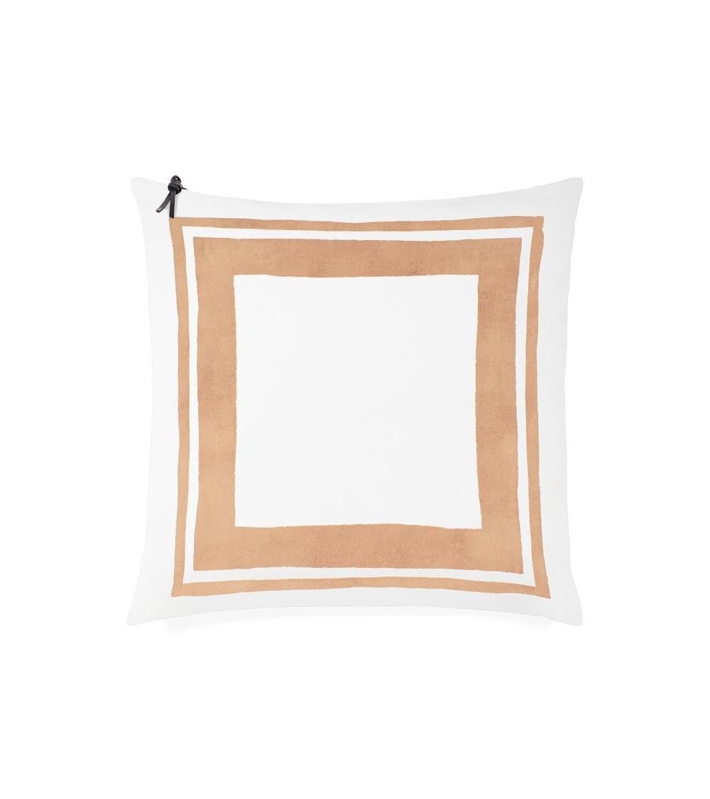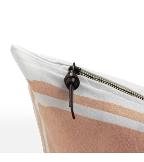 Housse de coussin en coton, au motif Cap Sa Sal avec sérigraphie et avec fermeture éclair en métal et détails en cuir. La conception du cadre de notre Cap Sa Sal nécessite une technique qui parvient à reproduire la couleur du design original. À cette occasion, nous avons eu recours à la sérigraphie. Un moule est généré, où chaque ligne est séparée par un vernis spécialement préparé. Une maille est tendue et rapprochée du coton. C'est le moment où l'encre envahit la maille et où les détails commencent à naître. Une raclette est utilisée pour répartir l'encre jusqu'à ce qu'elle recouvre tout. La touche finale est donnée par la séparation des mailles. Chaque coussin qui prend vie grâce à la sérigraphie est unique, car cette technique est reproduite individuellement.