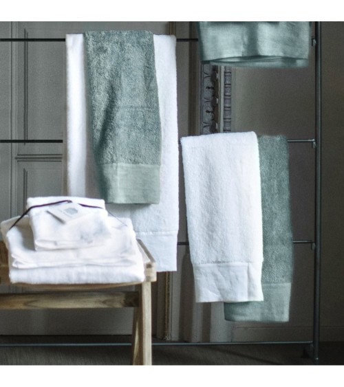 Serviette de toilette finition lin lavé vert d'eau 50x100