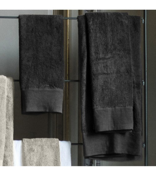 Serviette de toilette finition lin lavé gris plomb 100x150