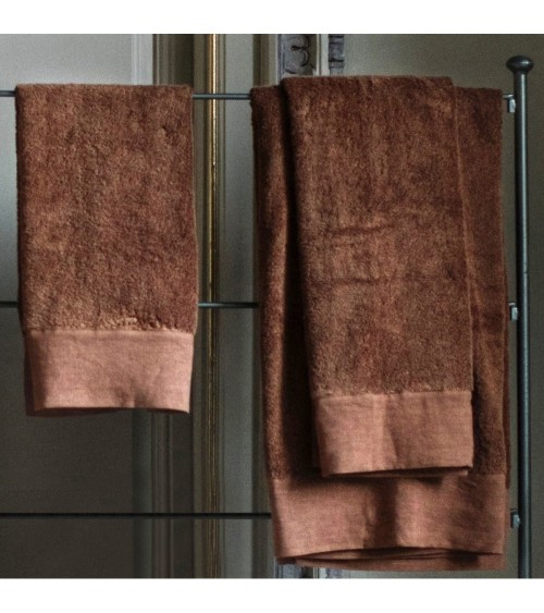Serviette de toilette finition lin lavé terre cuite 70x140