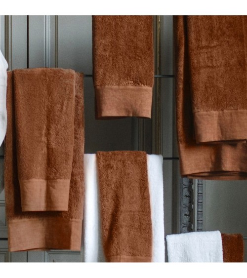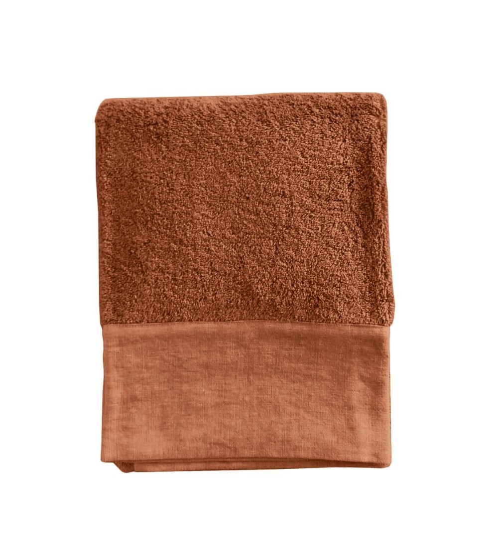Serviette de toilette finition lin lavé orange foncé 50x100