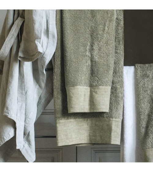 Douceur et spongiosité à leur meilleur dans un vêtement qui embellira la salle de bain et aimera votre peau. Serviette de bain 100% coton de 600gr, avec une double bande de 100% lin, avec un traitement de lavage et de teinture des vêtements qui leur apporte douceur et confort.Fabriqué en Espagne.