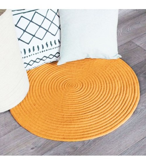 Tapis en coton réversible effet cordage jaune orangé diam.120