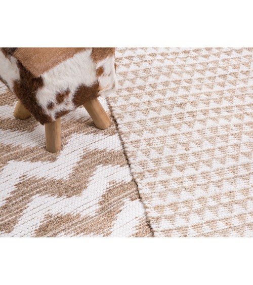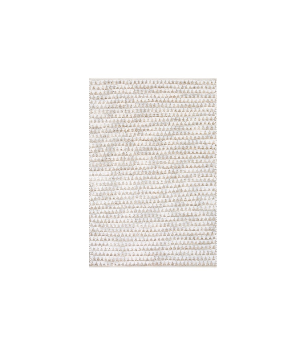 Ce tapis de haute qualité est surprenant avec ces motifs triangulaires. Il se compose de poils courts très doux d'une épaisseur de 1 cm. Ce tapis aux couleurs blanche et beige est idéal pour créer des contrastes, il ressortira aussi bien sur un sol clair, que sur un sol foncé. Les triangles sont équilatéraux, dont les côtés varient plus ou moins de 5 cm de longueur. Le tapis est fait à la main, composé des matériaux de qualité : coton (60%), jute (40%). Il mesure 160x230 cm. Les couleurs et les motifs peuvent différer de l'image que chaque tapis est fait à la main. Convient parfaitement pour le chauffage au sol. Les couleurs, les motifs du tapis et les dimensions +/- 5-7 peuvent différer de l'image, car ils sont fait a la main.
