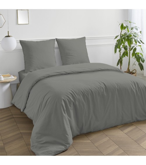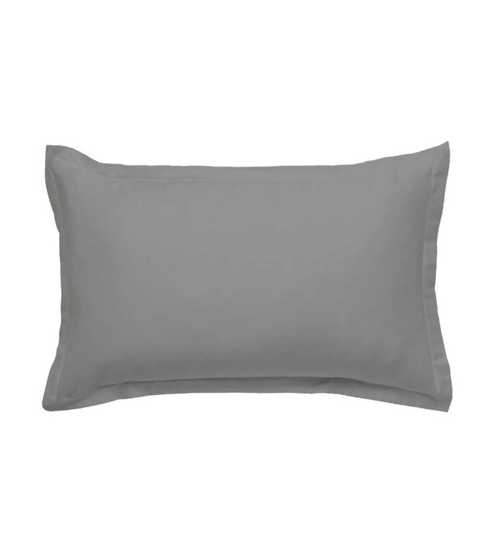 Taie d'oreiller en coton 57 fils unie gris lunaire 50x70cm