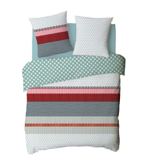 Parure de lit en satin réversible imprimé 78 fils vert d'eau et terracotta comprenant 1 housse de couette + 1 taie d'oreiller 63x63cm.La parure de lit Oasis est à elle toute seule le linge de lit dont nous rêvons tous : chic et bohème, son style se marie à l'infinie avec la douceur du satin de coton. Ses taies d'oreiller et sa housse de couette réversibles vous permettent d'adapter votre décoration au gré des saisons et des vos envies.Le linge de lit Oasis en 100% satin de coton avec une qualité de tissage supérieure de 78 fils/cm² est composée d'une housse de couette finition bouteille qui permet un meilleur maintien ainsi qu'un rabat optimal. La taie d'oreiller réversible aux dimensions 63x63cm, bordée sur deux côtés de fines franges aussi douce que chic, sera assortie au style bohème et aux tons verts d'eau de la housse de couette.A compléter avec nos drap-housse FUTURE HOME.COMPOSITIONS PRODUIT : Matière : 100% satin de coton Couleurs : Vert d'eau et terracotta Densité fils : 78 fils/cm² Certification : OEKO-TEX® Lavage : à 60° en machine 1 taie d'oreiller 63x63cm finition frangesVous faites attention à l'environnement ? Ca tombe bien, nous aussi ! La parure de lit OASIS vous est envoyée dans un pochon en tissu réutilisable, aux motifs de la housse de couette, et transformable en tote-bag une fois que vos draps trôneront fièrement sur votre lit. Un geste pour l'environnement, et d'infinies possibilités de réutiliser votre nouveau sac !En savoir plus : Ce produit labélisé STANDARD 100 by OEKO-TEX® - certificat n° 18.HPK48415 HOHENSTEIN HTTI suit un processus de fabrication certifié et contrôlé, respectueux de votre peau. Le STANDARD 100 by OEKO-TEX® EST un label qui vous garantit que vos draps ne contiennent aucun produits toxiques ni pour votre santé, ni pour l'environnement.