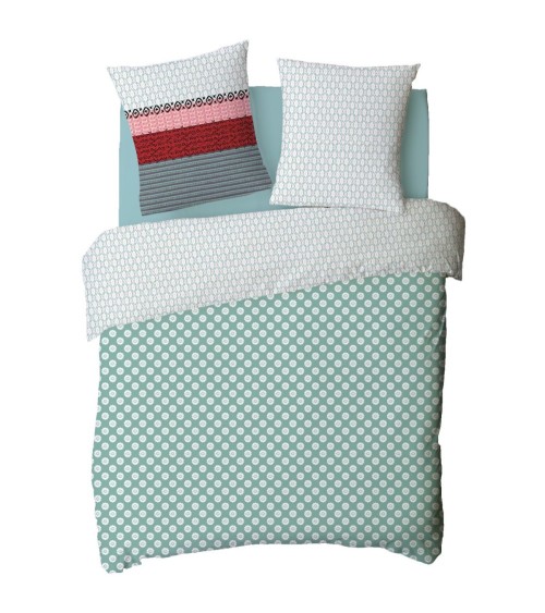 Parure de lit 1 personne en satin 78 fils imprimé vert 140x200cm