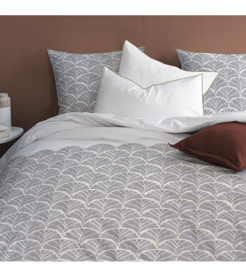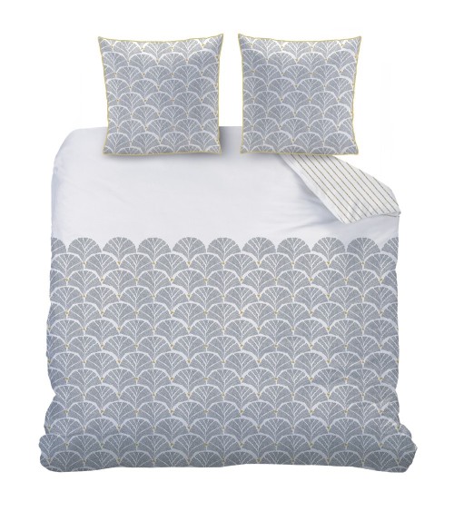 Parure REVE DECO de MATT & ROSE, composée d'une housse de couette et taie(s) d'oreiller en pur coton 57 fils. Motif d'inspiration art déco au recto et au verso pour jouer avec lune ou lautre des faces selon vos envies. Existe en plusieurs tailles. Caractéristiques de la parure : - Fermeture boutons pour la housse de couette- Finition passepoil contrasté sur la taie. - Coton de qualité, tissage serré (57 fils/cm2). - Grande qualité d'impression. - Lavable à 40°. - Composition des parures : Housse de couette 240x220 + 2 taies d'oreiller 65x65 cm ou housse de couette 260x240 + 2 taies d'oreiller 65x65 cm. Qui sommes-nous ? Matt&Rose est une jeune marque française de linge de maison au savoir-faire reconnu. Nos produits répondent à trois exigences : Un style unique, des matières de grande qualité et des prix accessibles à tous. Nous sommes certifiés label OKEO-TEX (certifie que les opérations techniques sont respectueuses de lenvironnement et ne présentent aucun danger pour la santé) et membre de la BSCI (garantissant de bonnes conditions de travail dans nos chaines dapprovisionnement).