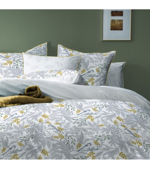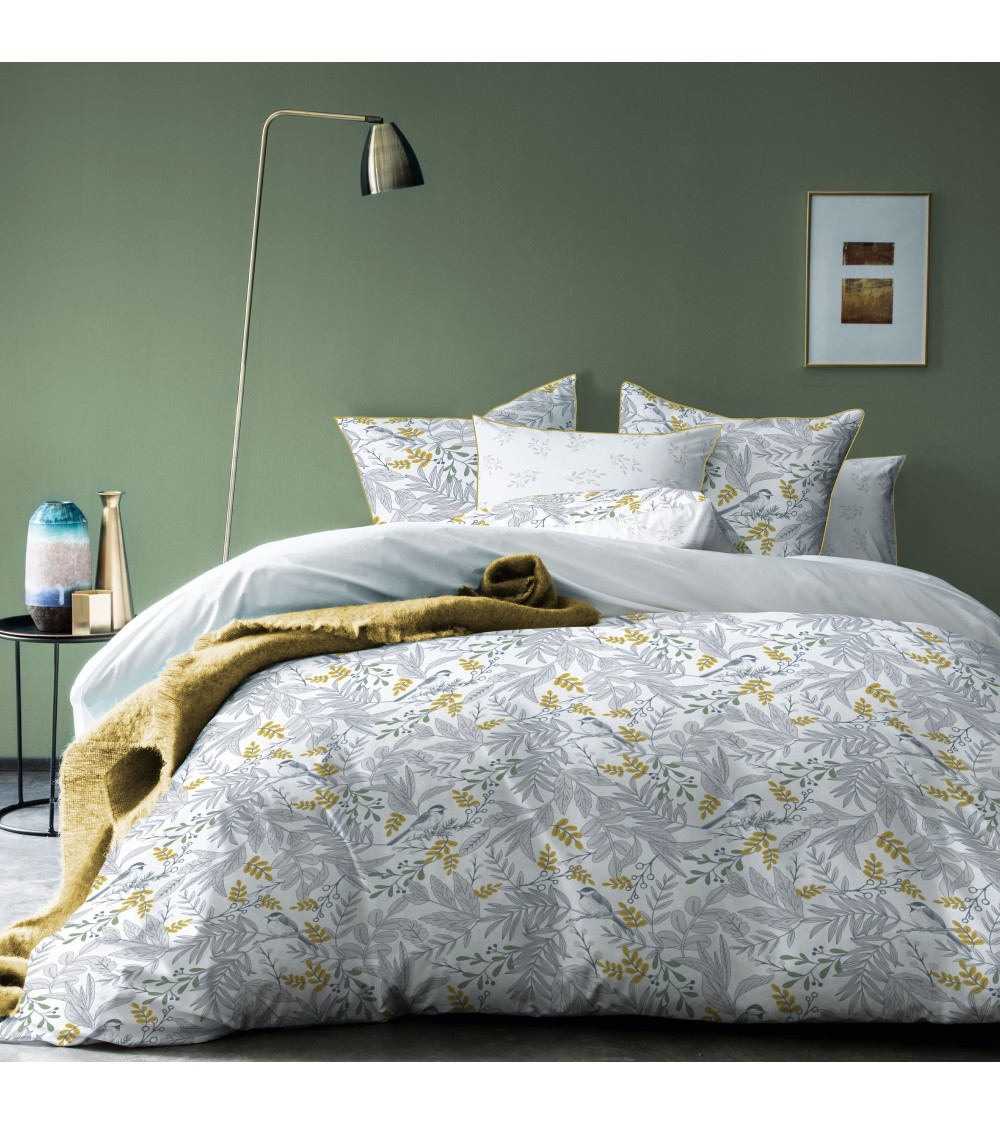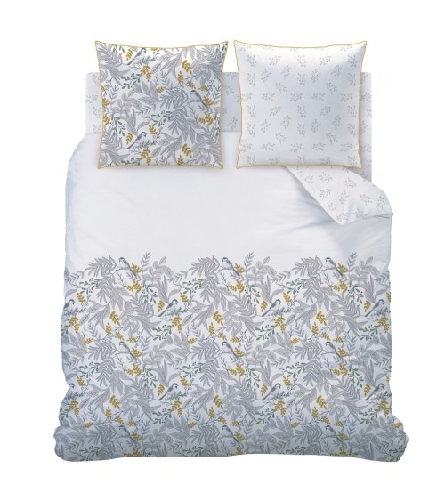 La parure Bird de Matt & Rose est composée d'une housse de couette et de deux taies d'oreiller 65x65cm. Motifs recto et verso pour jouer avec lune ou lautre des faces selon vos envies, imprimé végétal. Existe en plusieurs tailles.Caractéristiques de la parure : - Fermeture boutons pour la housse de couette.- Finition passepoil contrasté sur la taie. - Coton de qualité, tissage serré (57 fils/cm2).- Lavable à 40°. Composition des parures : Housse de couette 240x220 + 2 taies d'oreiller 65x65 cm ou Housse de couette 260x240 + 2 taies d'oreiller 65x65 cm. Qui sommes-nous ? Matt&Rose est une jeune marque française de linge de maison au savoir-faire reconnu. Nos produits répondent à trois exigences : Un style unique, des matières de grande qualité et des prix accessibles à tous. Nous sommes certifiés label OKEO-TEX (certifie que les opérations techniques sont respectueuses de lenvironnement et ne présentent aucun danger pour la santé) et membre de la BSCI (garantissant de bonnes conditions de travail dans nos chaines dapprovisionnement).