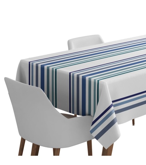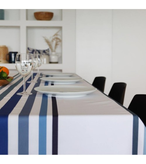 Découvrez notre nappe enduite Saial Flots Bleu à l'ambiance océanique. Un joli bleu intense et frais colore votre table. Misez sur la fraîcheur et la légèreté avec cette nappe enduite.