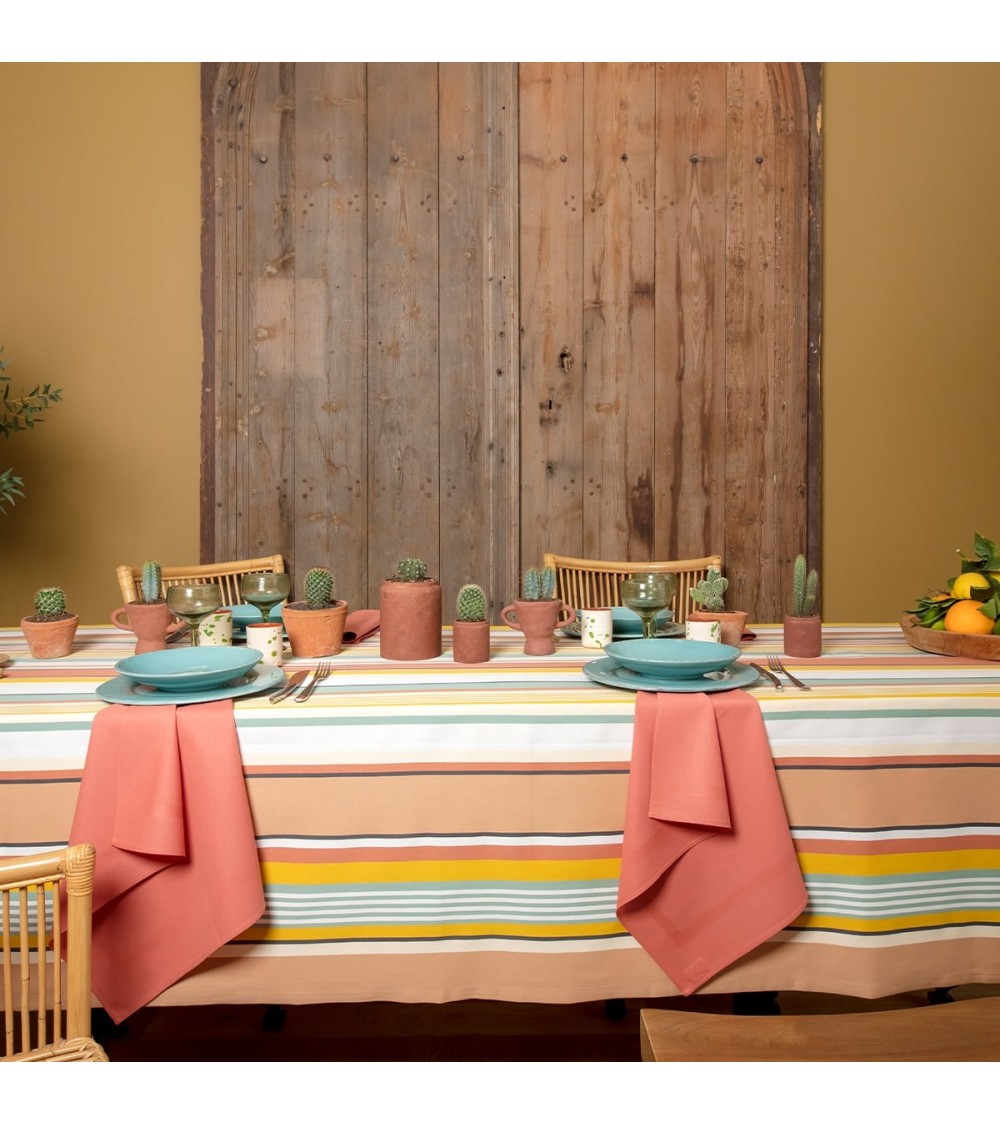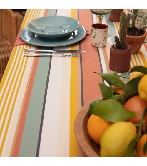 Découvrez notre nouvelle nappe enduite Osses Ambre aux couleurs naturelles et rayonnantes. La nappe enduite Osses Ambre est parfaite pour les repas estivaux.