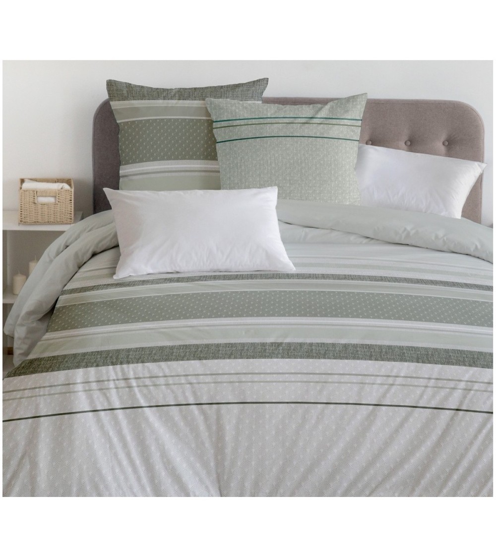 LE BAYADERE Parure de couette 100% coton - Vert - 220x240 cm