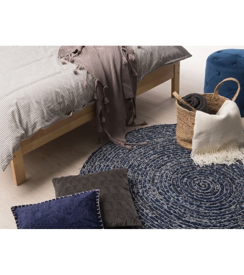 Rehaussez le confort de votre chambre ou salon avec ce tapis élégant d'inspiration bohème et rétro. Tressé avec du denim en coton de qualité, il est aussi agréable au toucher que pratique et résistant à l'usure. Grâce à sa forme en spirale originale et sa couleur bleu foncé, ce tapis rond se marie bien avec la plupart des décors et crée instantanément une atmosphère accueillante. Ajoutez à votre maison une touche de style et de chaleur.