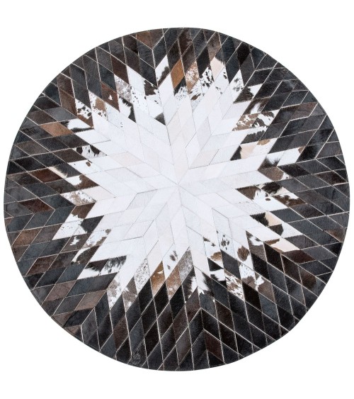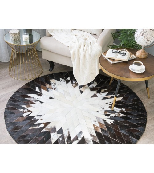 Ce tapis rond patchwork complète parfaitement le look de tout intérieur. Fabriqué à la main à partir de cuir de haute qualité, le tapis noir et blanc enchante par son motif original et expressif qui se démarquera sûrement dans chaque intérieur.