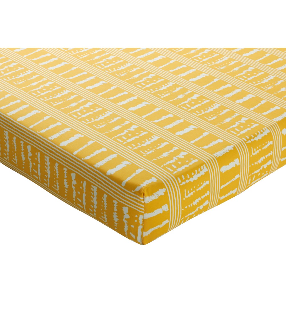 Mettez de la couleur du soleil dans votre chambre avec ce Drap-housse 160x200 en coton jaune. Voici un drap-housse imprimé sur lequel s'inscrivent des rayures horizontales et verticales très graphiques sur fond jaune. Un drap-housse en pur coton au tissage serré de 57 fils/cm2, lavable à 60°, qui conservera son éclat après de nombreux lavages. Ce drap-housse imprimé revêt une profondeur des bonnets de 28 cm.