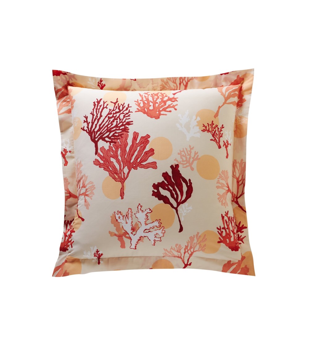 Rêvez de contrées lointaines avec le motif original de cette Taie d'oreiller carrée en percale de coton orange corail. On craque pour cette taie d'oreiller carrée imprimée de motif corail en percale de pur coton au tissage de 80 fils/cm², lavable à 60°. Un motif marin pour une toile au toucher doux. Cette taie carrée est munie dun volant plat de 5 cm.