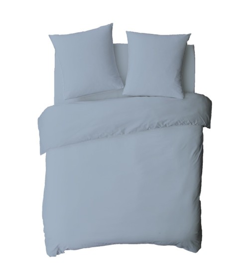 Housse de couette en coton 57 fils unie bleu nuage 260x240cm
