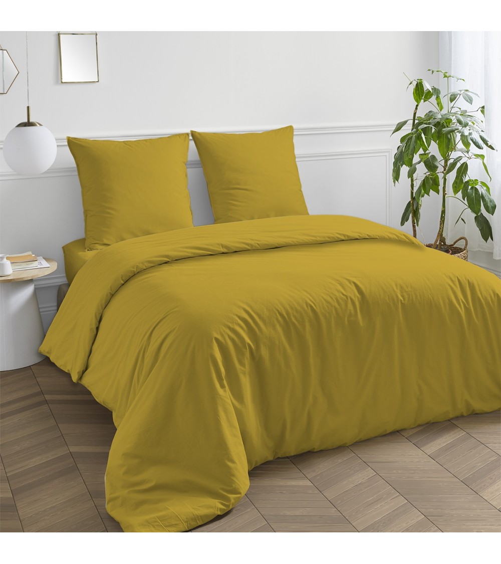 Housse de couette en coton 57 fils unie jaune moutarde 200x200cm