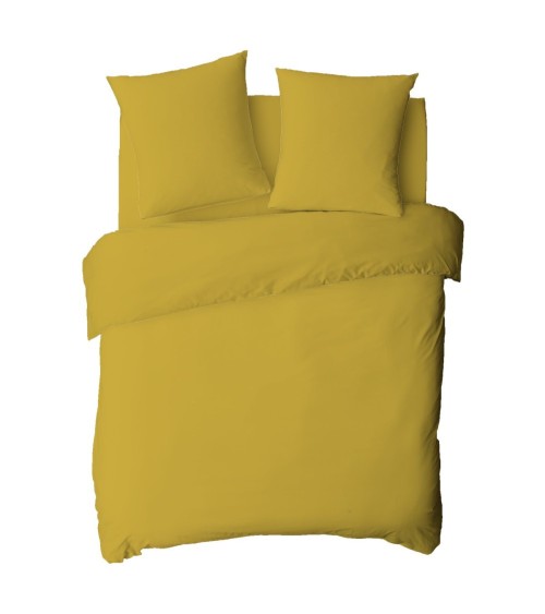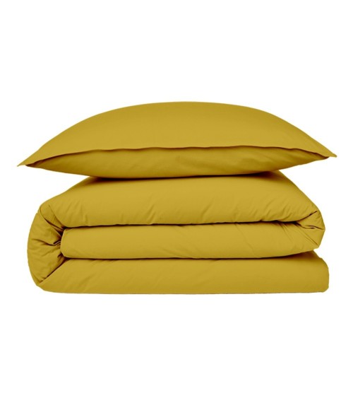 Housse de couette en coton 57 fils unie jaune moutarde 240x220cm