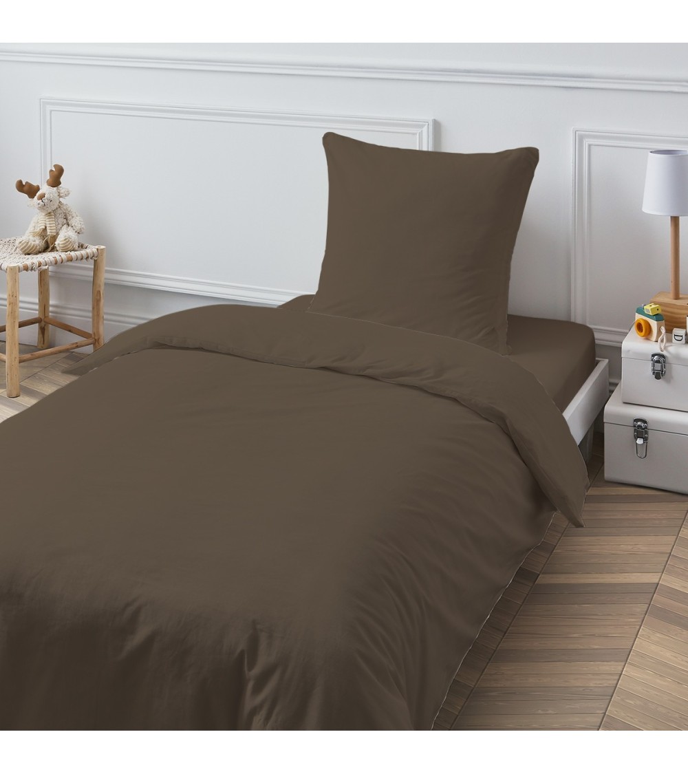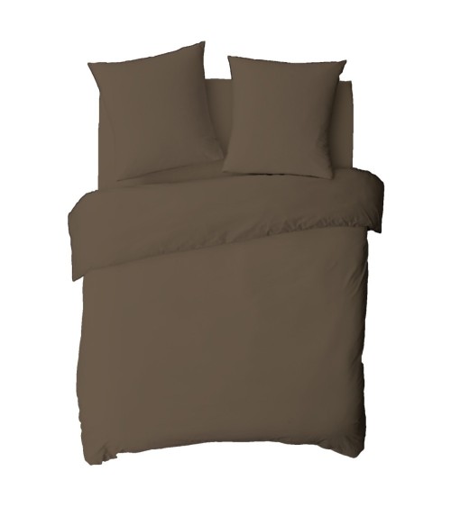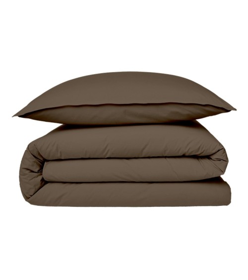 Housse de couette en coton 57 fils unie marron taupe 140x200cm