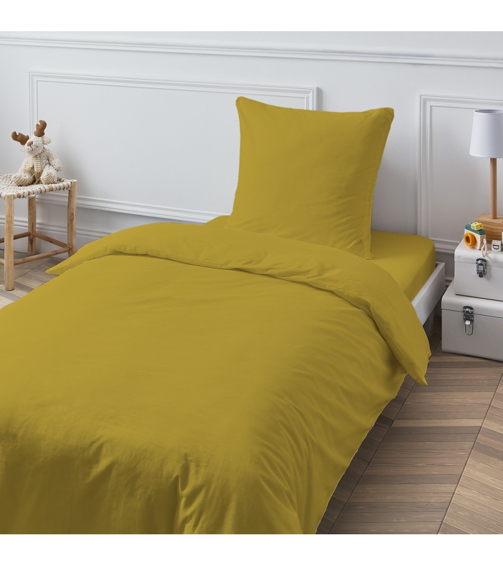 Housse de couette en coton 57 fils unie jaune moutarde 140x200cm