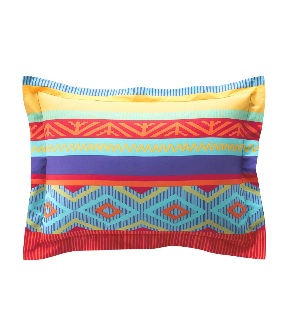 Faites entrer la danse des motifs dans la chambre avec cette Taie d'oreiller rectangulaire en coton multicolore. Une taie doreiller rectangulaire à rayures horizontales de motifs géométriques, munie dun volant plat de 5 cm et conçue dans un pur coton tout doux au tissage de 57 fils/cm2. Cette taie doreiller rectangulaire multicolore est lavable à 60°.