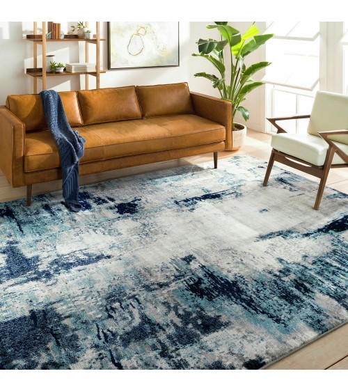 Tapis Abstrait Moderne - Bleu, Blanc et Gris - 160x220cm