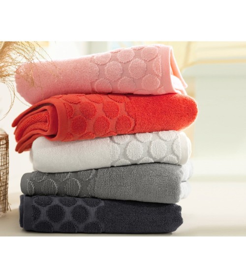 Laissez la douceur de cette éponge vous combler avec cette Serviette de toilette rose thé 100x150 en coton. Un maxi drap de bain conçu dans une éponge de pur coton à motif cercles en relief sur le liteau : une qualité d'éponge de coton peigné 500 g/m2 à la douceur et pouvoir dabsorption remarquables, lavable à 40°.