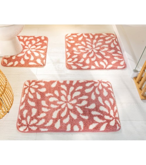 Lessayer, cest ladopter ! Offrez-vous ce Tapis de bain rose 80x50 en polyester. Ce tapis de bain rectangulaire motif végétal, tout moelleux et épais 1800 g/m² se pare de longs poils (15 mm), conçu avec 90% polyester, 10% acrylique et dos latex TPE (thermo plastique élastomère). Ce tapis de salle de bain au design végétal est lavable à 40°.