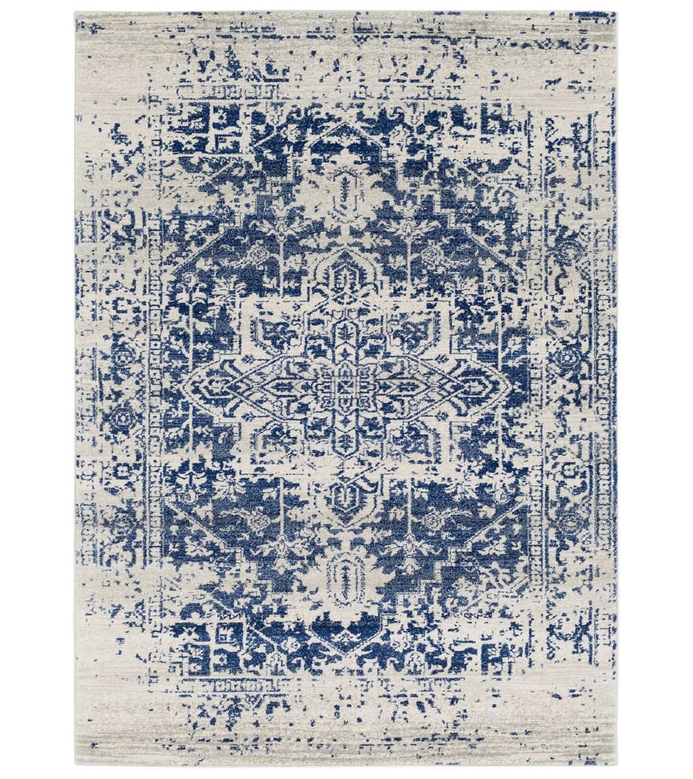 Le tapis à effet usé : la quintessence du chic ?Vous lavez vu partout. le tapis dOrient séduit toujours autant par son élégance. Si son intemporalité captive, c'est parce que son design a su évoluer et se réinventer au fil du temps.Savoureux mélange d'ancien et de moderne, ce tapis Shabby Chic, ici associé à un bleu très contemporain, rappelle les grands hôtels particuliers de lépoque tout en évoquant un univers très actuel.La collection VINTAGE présente des modèles traditionnels mettant en valeur des designs intemporels et chics.Avec ces effets vieillis et lustrés de grand style, nos tapis VINTAGE sintègrent sans effort dans tous les styles dintérieur. Leurs motifs poncés sharmonisent à des ambiances classiques aussi bien quà des univers ultra contemporains.Tissé à la machine par nos experts, notre tapis est durable, résistant à l'humidité, à la décoloration et aux taches, sans perte de poils.Pensé et conçu pour les zones intérieures à fort trafic. Résistant aux petits accidents de la vie causés par les enfants ou les animaux de compagnie.Facile dentretien : Passez laspirateur régulièrement. Éponger les petites taches avec un détergent doux ou un nettoyant pour tapis.Doux et confortables, les tapis SURYA apportent chaleur et convivialité dans toutes les maisons. Modèle : JULIETTE Collection : VINTAGE Couleurs : Marine, Gris Moyen, Beige Clair Style : Oriental Composition : 100% Polypropylène Dimensions : 200 x 275 cm Poids : 6,88 kg Hauteur de Poil : 6,5 mm Matière du dessous : Jute + Coton Conseil d'entretien : Lavage à Main Forme : Rectangulaire Certification : STANDARD 100 by OEKO-TEX® Utilisation : Intérieur Compatible avec des Robots Aspirateurs Compatible avec le Chauffage au Sol Exempt de tous produits Nocifs et Hypoallergénique Naturellement Anti-Bruit Antibactérien