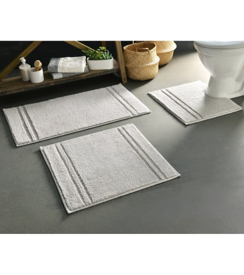 Offrez à vos pieds, le confort quils méritent avec ce Tapis de bain gris brume 120x70 en coton. Ce tapis de bain rectangulaire revêt un style graphique au design chic ! Confort moelleux et maintien de la tenue à l'usage pour ce tapis de bain motifs rayures en pur coton à lépaisseur luxe 1800 g/m², bien absorbant, muni dun envers latexé antidérapant. Cet épais tapis de salle de bain rectangulaire est lavable à 30°.