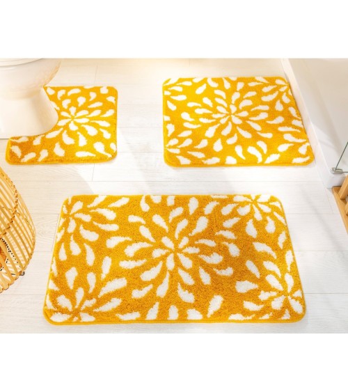 Lessayer, cest ladopter ! Offrez-vous ce Tapis de bain jaune 100x60 en polyester. Ce tapis de bain rectangulaire motif végétal, tout moelleux et épais 1800 g/m² se pare de longs poils (15 mm) . C'est un tapis conçu avec 90% polyester, 10% acrylique et dos latex TPE (thermo plastique élastomère). Ce tapis de salle de bain est lavable à 40°.
