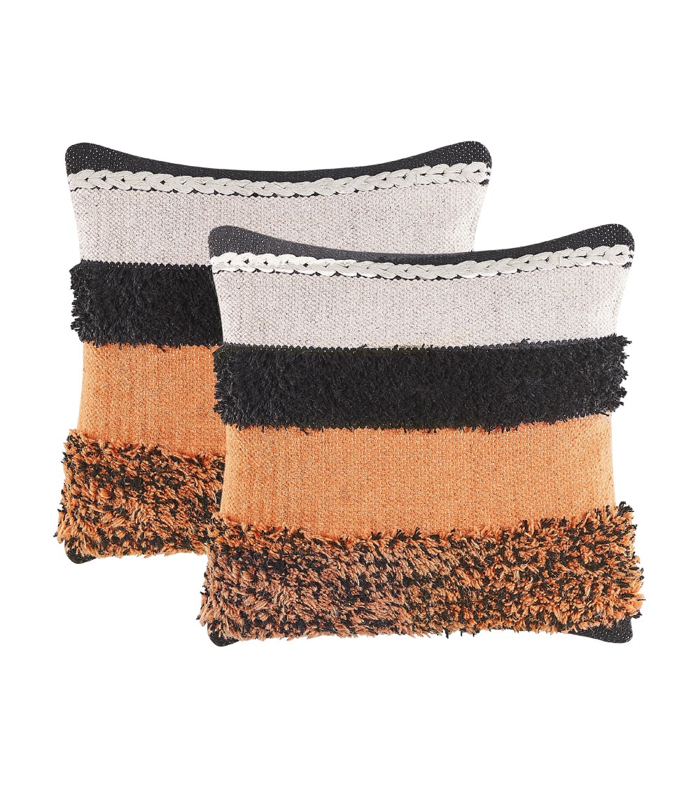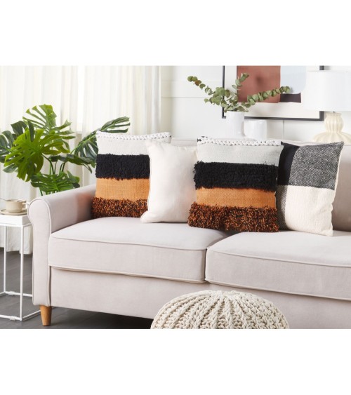 Coussins déco faits à la main en laine et coton motif rayures tendance. Ajoutez un peu plus de couleurs à votre salon ou chambre à coucher ! Ces jolis coussins déco sont fait à la main à partir de coton et de laine de qualité pour vous offrir à la fois douceur et style. Multicolores, aux teintes vives ils seront idéals pour habiller un canapé bohème ou un lit d'inspiration rétro. Ces superbes coussins sont déhoussables, grâce à une fermeture éclair astucieusement cachée.Détails: Type de produit: Coussin décoratif Style: Rétro Couleur principale: Multicolore Type de matière: Tissu Matière principale: Laine Matière du rembourrage: Polyester Forme: Carré Fabriqué à la main: Oui Motif: À rayure Dimensions: Profondeur: 45 cm Largeur: 45 cm Hauteur: 12 cm Poids du rembourrage: 350 kg Poids: 0.9 kg L`offre inclue: 2 x Oreiller Caractéristiques clés: Solution parfaite pour la chambre et le salon, Décoratif et fonctionnel, Jolies couleurs vives, Matières robustes faciles à entretenir, Housses amovibles Informations d`assemblage: Ne nécessite pas d'assemblage Informations supplémentaires: Le coussin est scellé sous vide pour le transport. Veuillez retirer le coussin de l'emballage et le laisser reposer pendant 24 heures jusqu'à ce qu'il atteigne sa pleine densité. Conseils de maintenance: Laine: 1.Ne pas sécher en machine et ne pas repasser 2.Lavage à la main uniquement. Utilisez de l'eau froide et un nettoyant doux.