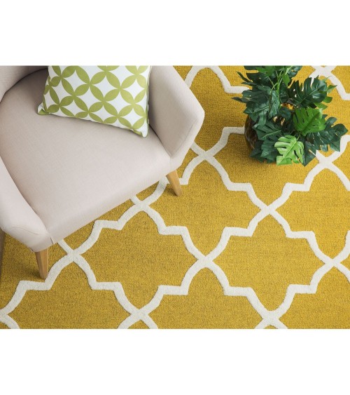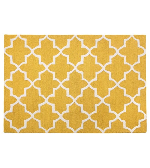 Ce tapis brodé en coton de haute qualité apportera de la couleur et de la gaieté à votre intérieur. Ce tapis rectangulaire fabriqué à la main se compose d'une multitude de bandes en coton de couleur jaune, créant ainsi un ensemble harmonieux qui mettra en valeur votre sol. Ce tapis moelleux de 140x200 cm, à poil ras, est fait à la main, en coton (20%) et en laine (80%), donnant ainsi un aspect à la fois noble et classique à votre pièce. Disponible également en taille et en couleur différentes sur notre site. Les couleurs, les motifs du tapis et les dimensions +/- 5-7 peuvent différer de l'image, car ils sont fait a la main. Vous pouvez l'intégrer à n'importe quel style de décoration et n'importe quel type de sol. Élégance et confort !