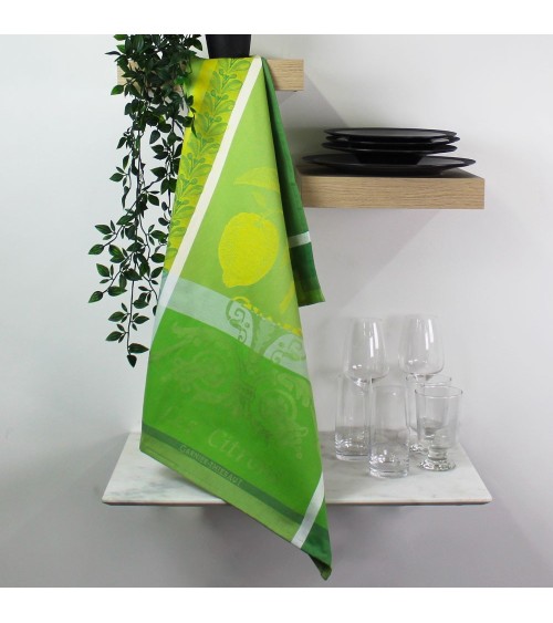 Torchon 100% coton damassé (jacquard) fabriqué en France. Linge des Vosges. Dans la série des torchons Fruits & Légumes, voici le modèle CITRONS ! Il se coordonne parfaitement avec le torchon LES ASPERGES et les autres modèles de cette série culinaire. Matière : 100% coton. Couleur dominante : zeste. Taille (largeur x longueur) : 56x77. Traitement : . Type : jacquard. Style : Fleurs et nature. Finitions : Finition de qualité avec ourlet standard de 10 mm. Grammage : . Entretien : Laver séparément à 40°C avant la première utilisation. Une tache s'incruste plus facilement sur un linge non prélavé.Laver en machine avec une lessive couleurs pour le linge de couleur. Respecter les instructions de lavage de l'étiquette cousue sur le produit.Cet article est labellisé Vosges Terre Textile. Il a été tissé dans nos ateliers de Gérardmer : véritable linge fabriqué dans les Vosges !