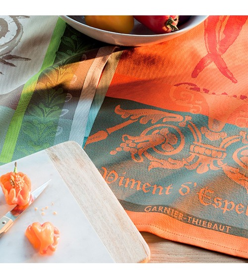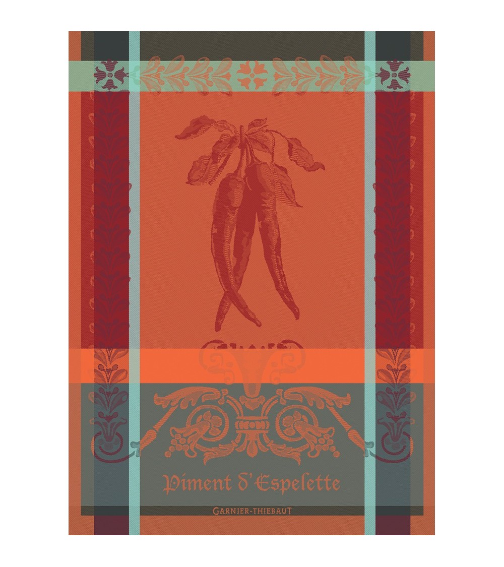Torchon 100% coton damassé (jacquard) fabriqué en France. Linge des Vosges. Douce brûlure, saveurs enflammées... Piments d'Espelette aux couleurs incandescentes. Matière : 100% coton. Couleur dominante : epices. Taille (largeur x longueur) : 56x77. Traitement : . Type : jacquard. Style : Fleurs et nature. Finitions : Finition de qualité avec ourlet standard de 10 mm. Grammage : . Entretien : Laver séparément à 40°C avant la première utilisation. Une tache s'incruste plus facilement sur un linge non prélavé.Laver en machine avec une lessive couleurs pour le linge de couleur. Respecter les instructions de lavage de l'étiquette cousue sur le produit.Cet article est labellisé Vosges Terre Textile. Il a été tissé dans nos ateliers de Gérardmer : véritable linge fabriqué dans les Vosges !