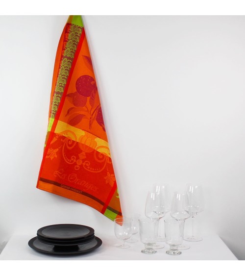 Torchon 100% coton damassé (jacquard) fabriqué en France. Linge des Vosges. Couleurs vitaminées pour ce torchon de la série Fruits&Légumes qui vous redonnera du peps dans le gris et le froid de l'hiver. 100% coton jacquard Matière : 100% coton. Couleur dominante : sanguine. Taille (largeur x longueur) : 56x77. Traitement : . Type : jacquard. Style : Fleurs et nature. Finitions : Finition de qualité avec ourlet standard de 10 mm. Grammage : . Entretien : Laver séparément à 40°C avant la première utilisation. Une tache s'incruste plus facilement sur un linge non prélavé.Laver en machine avec une lessive couleurs pour le linge de couleur. Respecter les instructions de lavage de l'étiquette cousue sur le produit.Cet article est labellisé Vosges Terre Textile. Il a été tissé dans nos ateliers de Gérardmer : véritable linge fabriqué dans les Vosges !