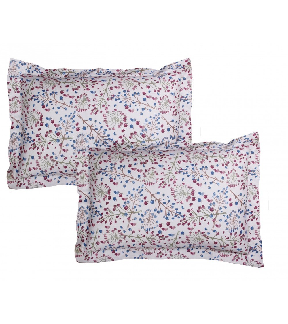 Lot de 2 taies d'oreiller satin de coton 50x70cm imprimé Ombellifère