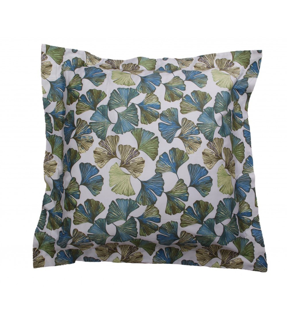 Taie d'oreiller satin de coton 63x63 cm imprime Ginkgo