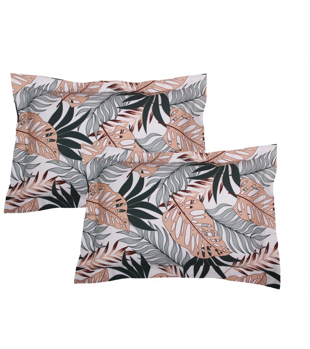 Lot de 2 taies d'oreiller satin de coton 50x70cm imprimé Tropical