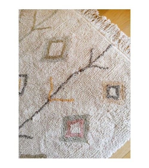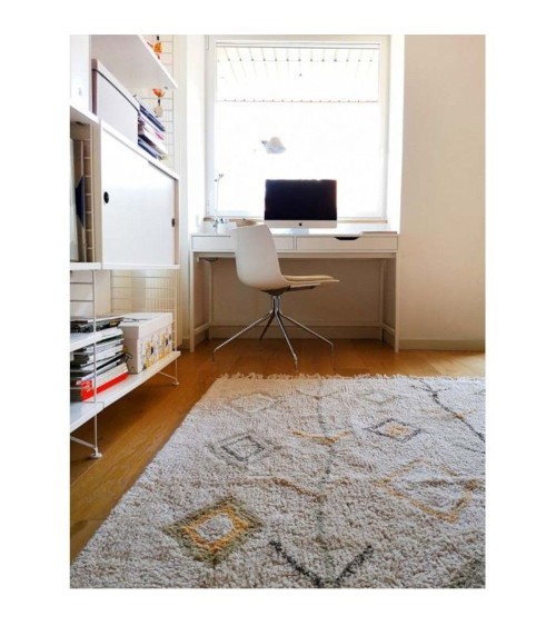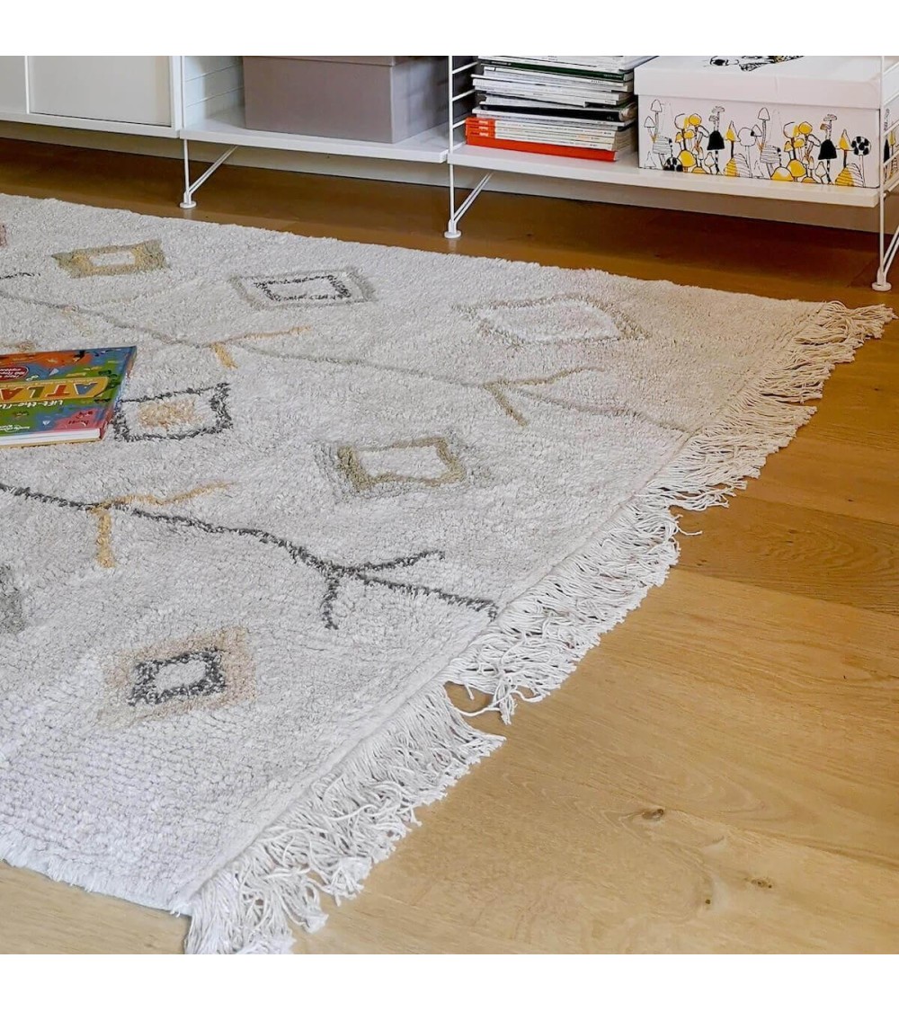 Tapis Kaarol Terre - 170 x 240 cmIdéal pour un salon ou une chambre, ce tapis beige est composé de flèches et de losanges variés de couleur terre (marron, brun, ocre, gris).Il crée une ambiance chaleureuse et accueillante tout en conservant son côté chic.Chaque pièce est unique, il peut donc y avoir de petites variations de couleur et de forme. Conforme à toutes les réglementations de qualité et de sécurité pour les enfants (ISO 9001, ISO 14001, ISO 18001 et AITEX), il est conçu à base de fibres 100% naturelles. Il est fait main 100% en coton, et ne contient aucune substance toxique.Le plus de ce tapis : il est lavable en machine ! Ce tapis est dessiné en Espagne et fabriqué à la main en Inde. Livrable sous 1 ou 2 semaines. Dimensions du tapis : 170 x 240 cm