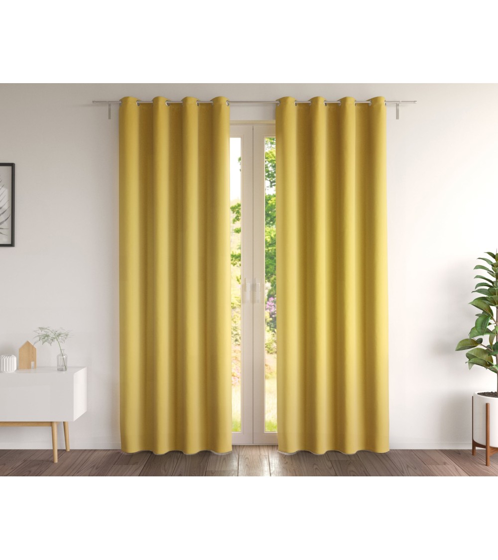 Les 2 font la paire lutile se joint à lagréable avec cette Paire de rideaux jaune curry 135x260 en coton. Les rideaux occultants représentent une solution simple, efficace et économique qui assure de bonnes isolations. Les rideaux occultants isolent de la lumière, du froid, de la chaleur et des courants d'air. Ces rideaux affichent un beau tissage mat, chic et tendance avec tombé souple, qualité lourde 320 g/m², lavables à 30°. Ils sont prêts à poser, montés sur illets passe-tringle pour une pose simple et rapide. La face unie mate est conçu en 100 % polyester et le dos uni blanc revêt une enduction triple couche acrylique, pour les propriétés isolantes.