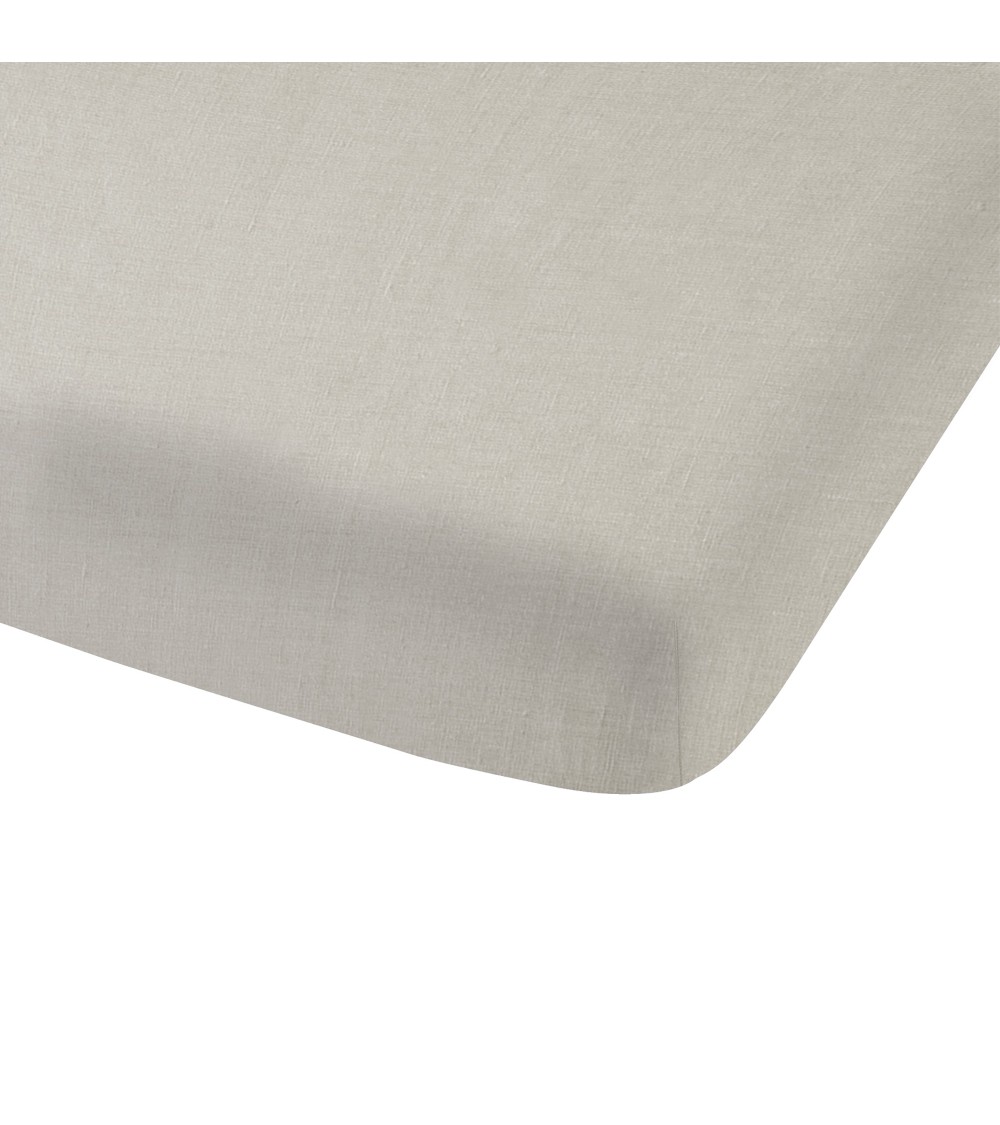 Drap-housse uni en lin lavé Naturel 160x200cm - Bonnet 30cm