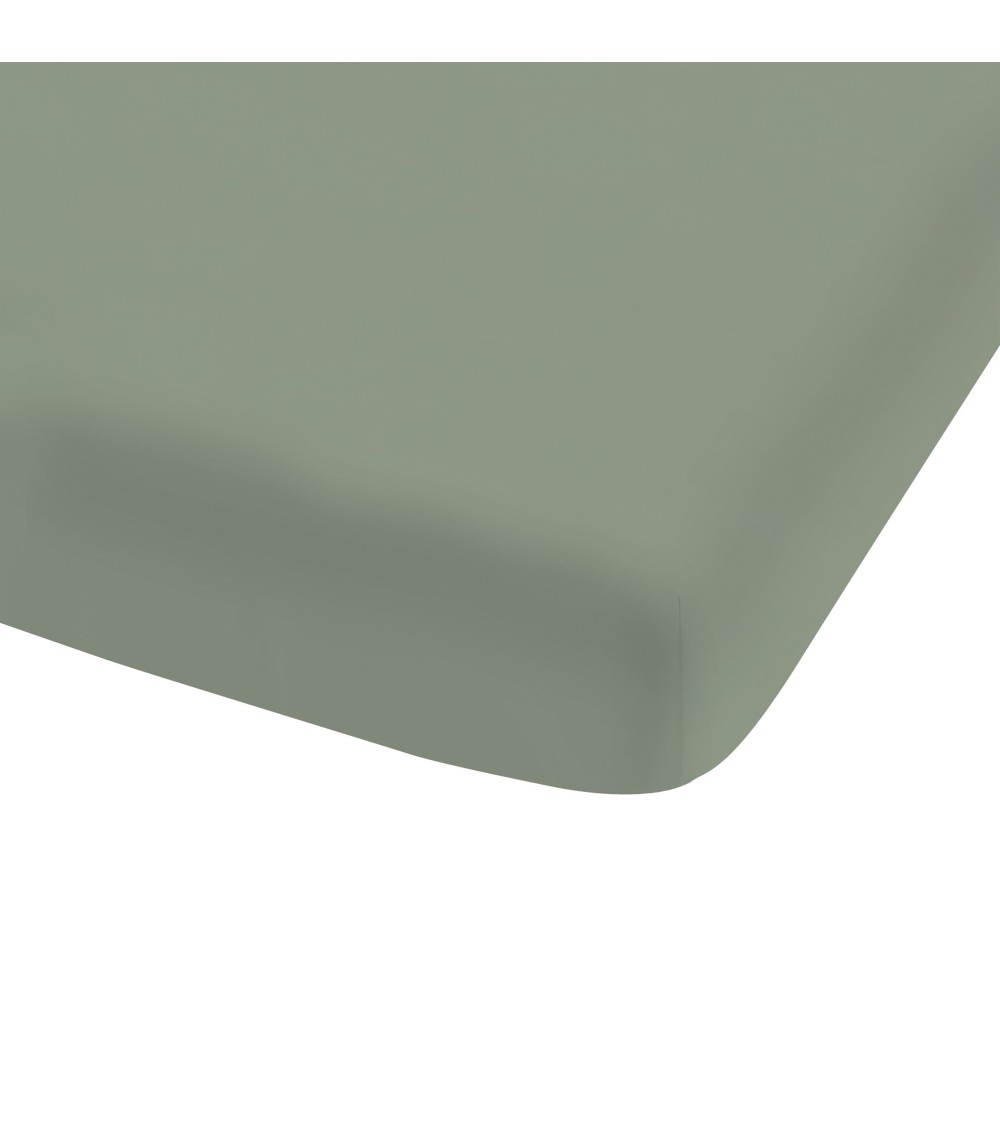 Drap-housse uni en coton lavé Lichen 160x200cm - Bonnet 30cm