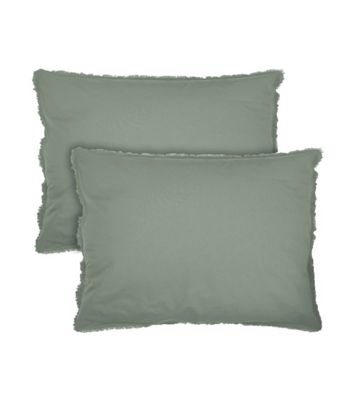 Set de 2 taies doreiller unies finition à franges Lichen 65x65cm