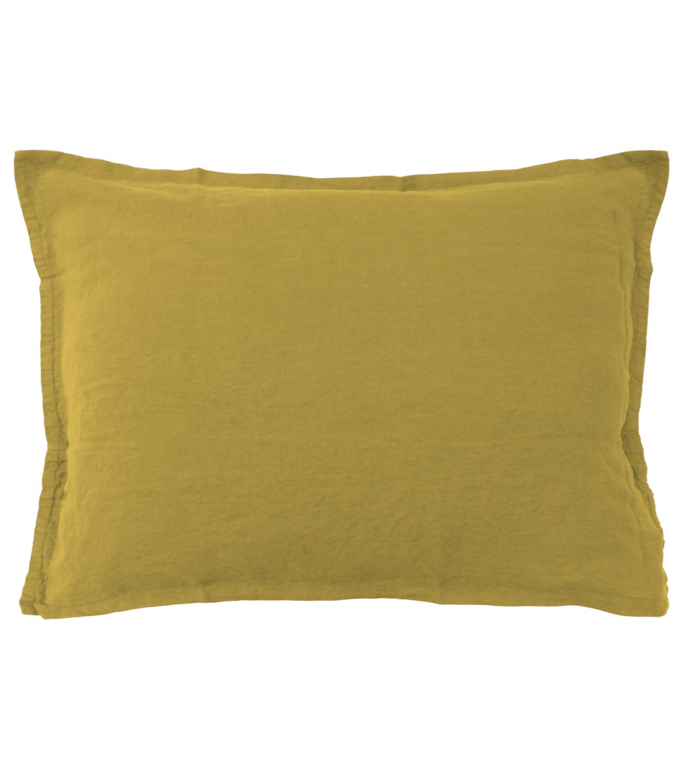 Set de 2 taies doreiller unies en lin lavé Safran 50x70cm