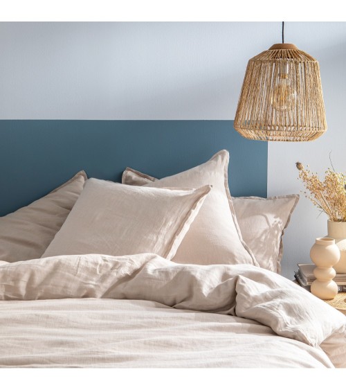 Set de 2 taies doreiller unies en lin lavé Naturel 65x65cm
